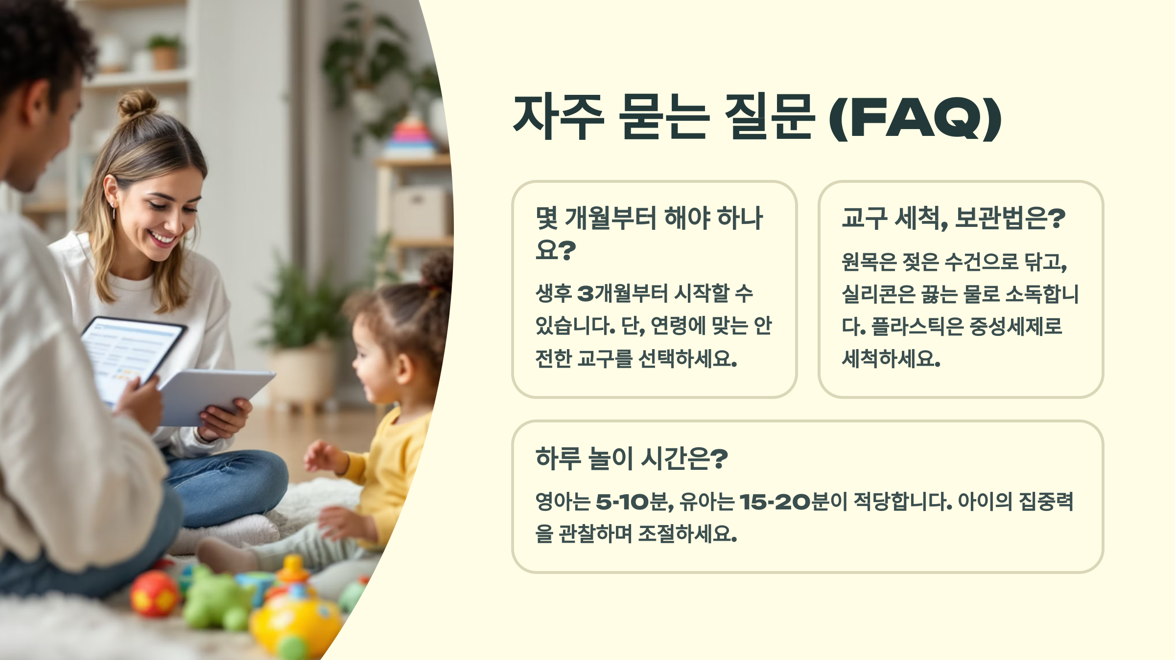이 팁들을 실천하면 오감놀이의 효과는 2배, 만족도는 3배가 될 거예요! 이제 자주 묻는 궁금증들을 모은 FAQ 코너로 넘어가볼까요? 🙋‍♀️🙋‍♂️