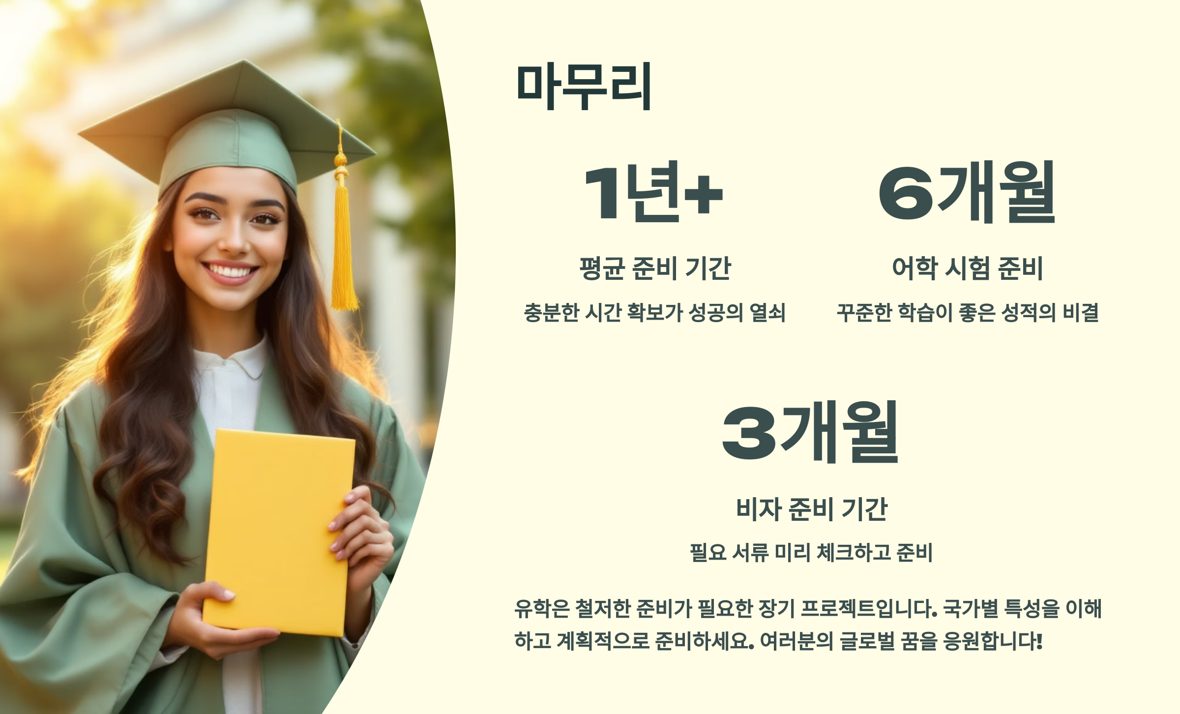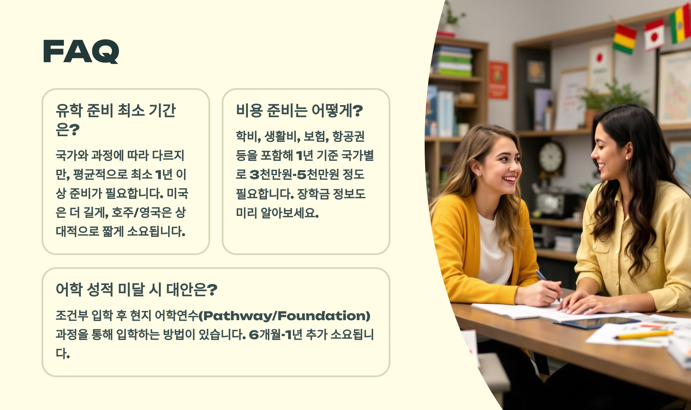 혹시 지금 시작하기엔 늦은 건 아닐까 걱정된다면, 지금 이 글을 읽는 바로 이 순간이 가장 빠른 출발점이에요. 지금 이 순간부터, 당신의 유학 여정이 시작됩니다. 😊✈️