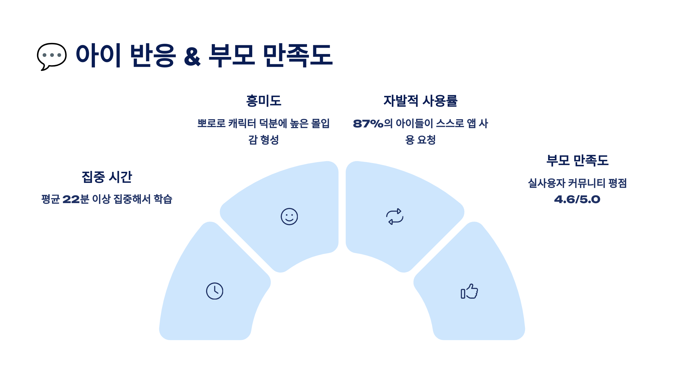 | 집중도 | 5분도 힘들어함 | 15분 이상 스스로 학습 |