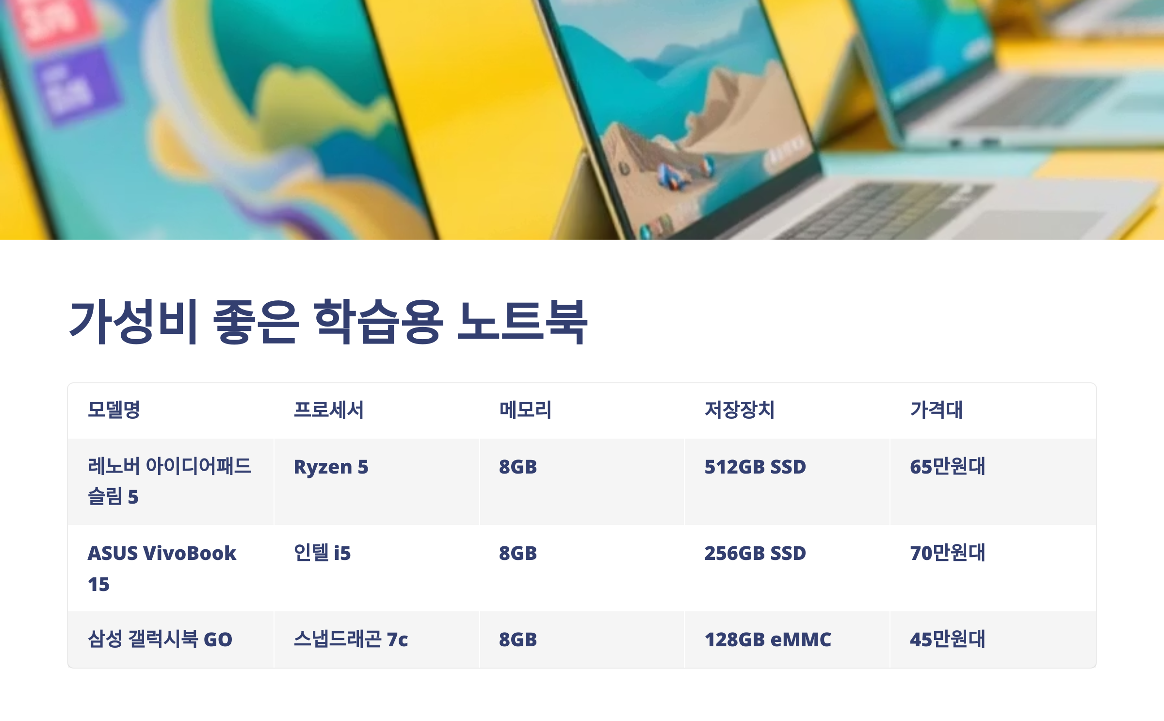 📘 중고등학생 추천 노트북 비교