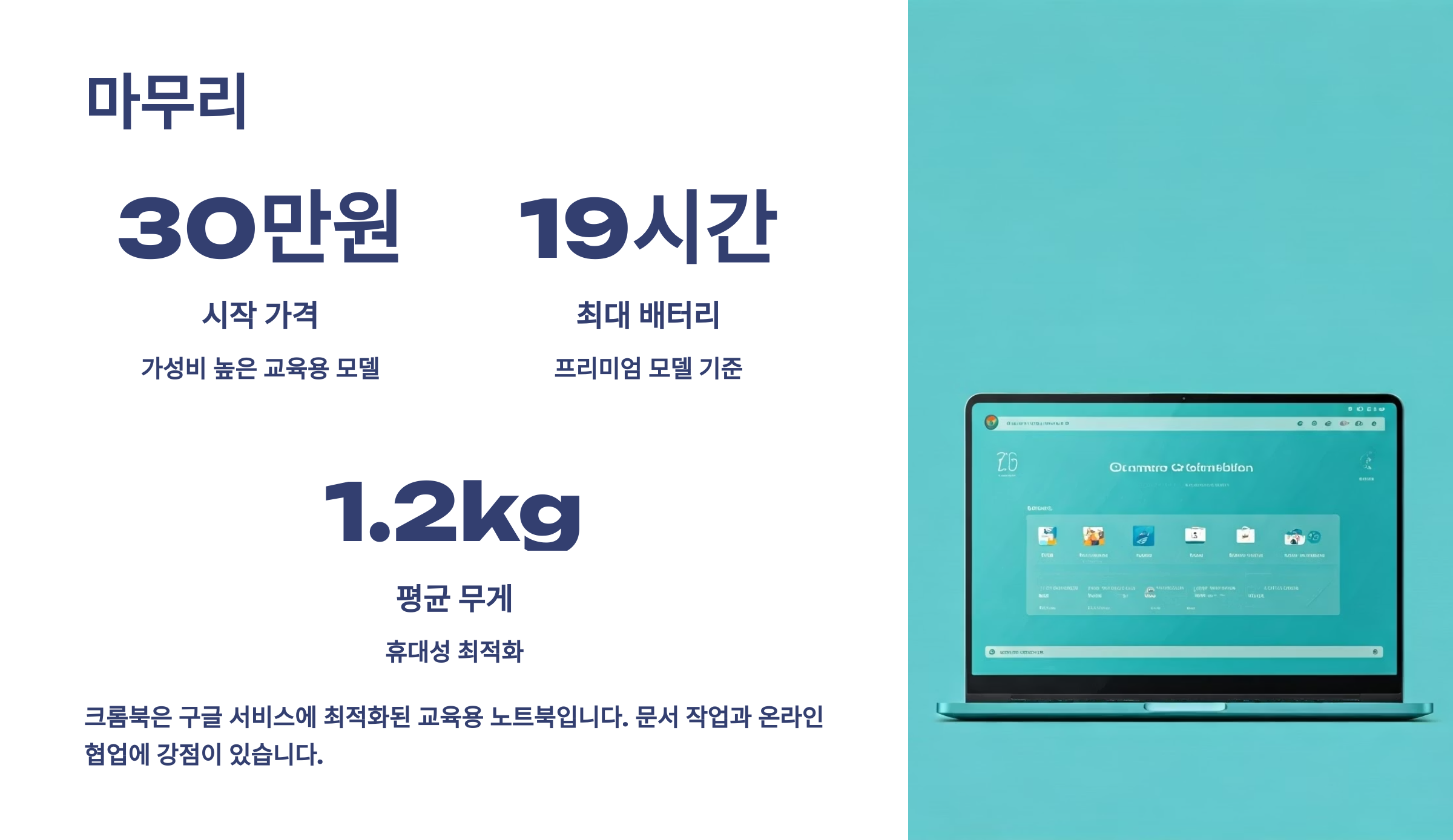 처음엔 “노트북인데 윈도우도 안 돌아간다고?” 하는 생각이 들었어요. 그런데 막상 크롬북을 수업용으로 써보니 생각보다 훨씬 간편하고 가벼워서 놀랐어요! 수업용 기기라는 관점에서 보면 꽤 괜찮은 선택이더라고요. 😲