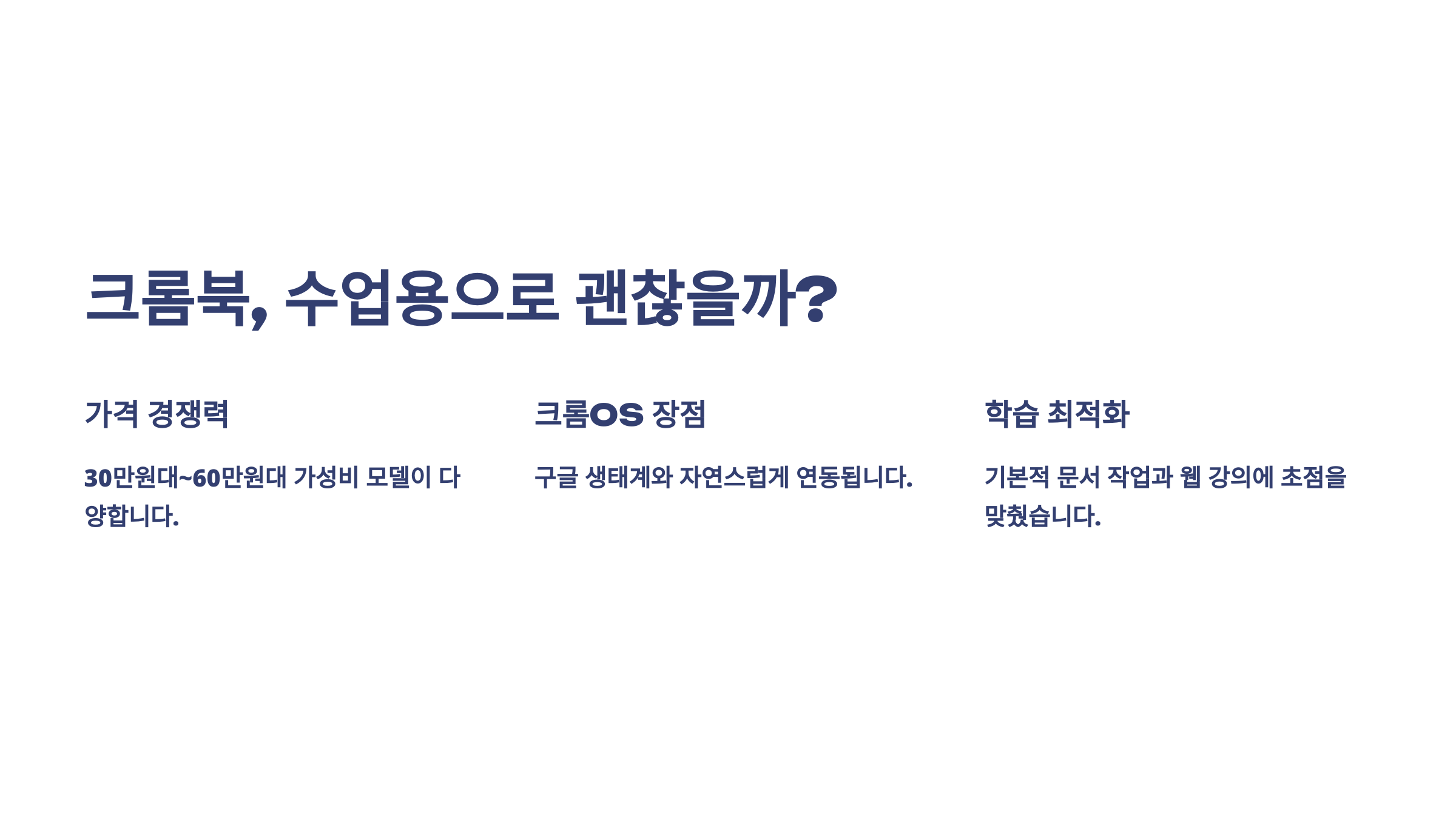 이제 크롬북으로 온라인 수업을 들을 땐 어땠는지, 다음 섹션에서 자세히 이야기해볼게요~ 🎧