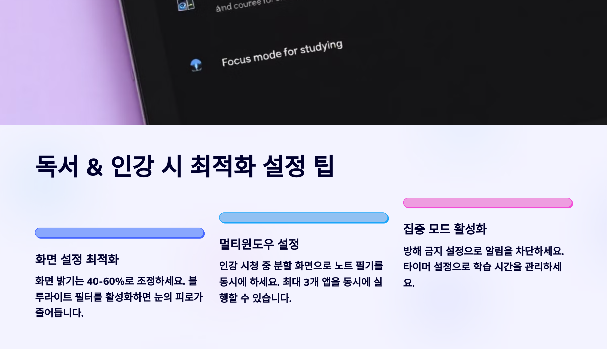 🔧 작은 설정 하나만 바꿔도 공부 피로도는 줄이고, 집중도는 확 높일 수 있어요. 꼭 적용해보세요!