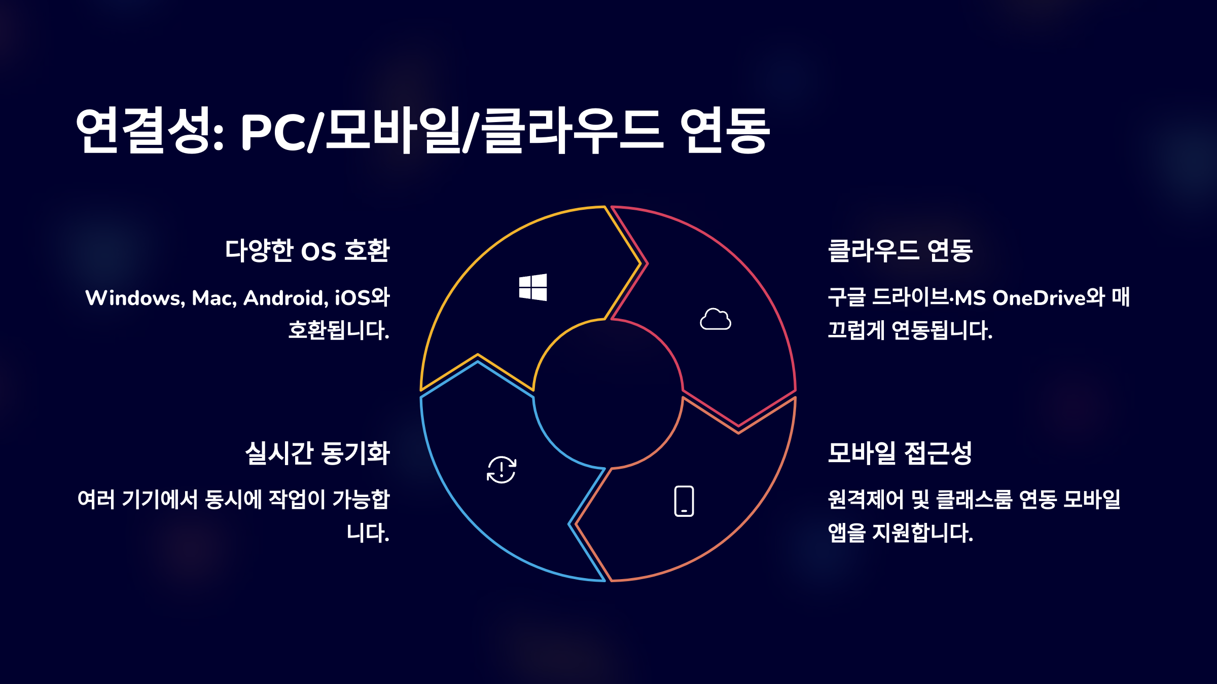 다음은 연결성과 활용도에 대해 정리해볼게! 🔌 PC/모바일/클라우드 연동은 얼마나 편리할까?