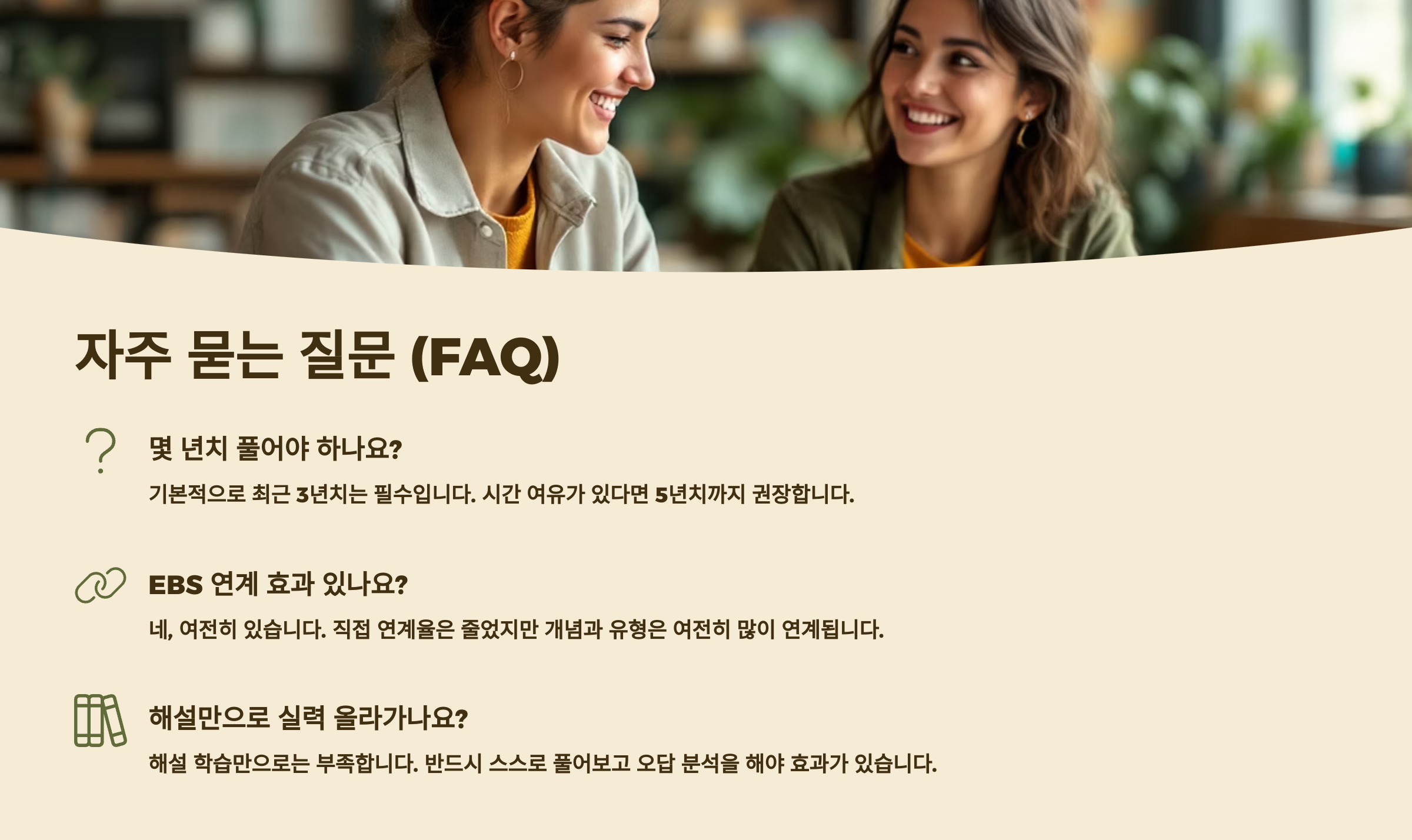 📌 특히 국어와 영어 과목에서 EBS는 문제 유형, 지문 구조, 출제 포인트까지 유사하게 따라가는 구조라서, 기출과 함께 병행하는 게 매우 중요해요. 영어의 경우, 지문 자체가 유사하게 변형돼서 나오기도 하죠.