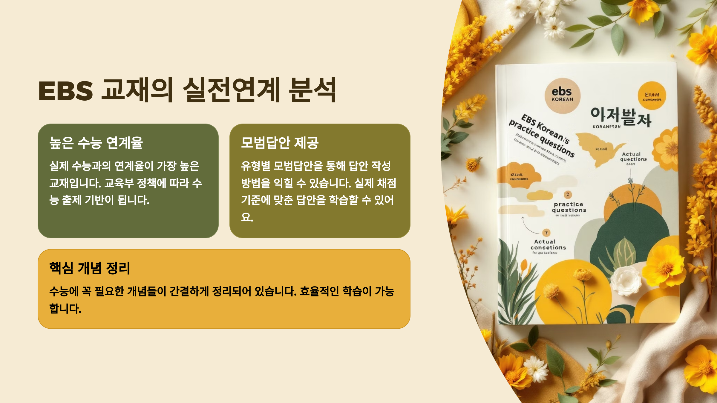 📌 정리하면, EBS는 수능 출제자의 마음을 간접적으로 들여다볼 수 있는 교재예요. 기출과 병행해서 연계 훈련까지 해두면, 실전에서 문제 풀이 속도와 정확도가 확 달라져요!