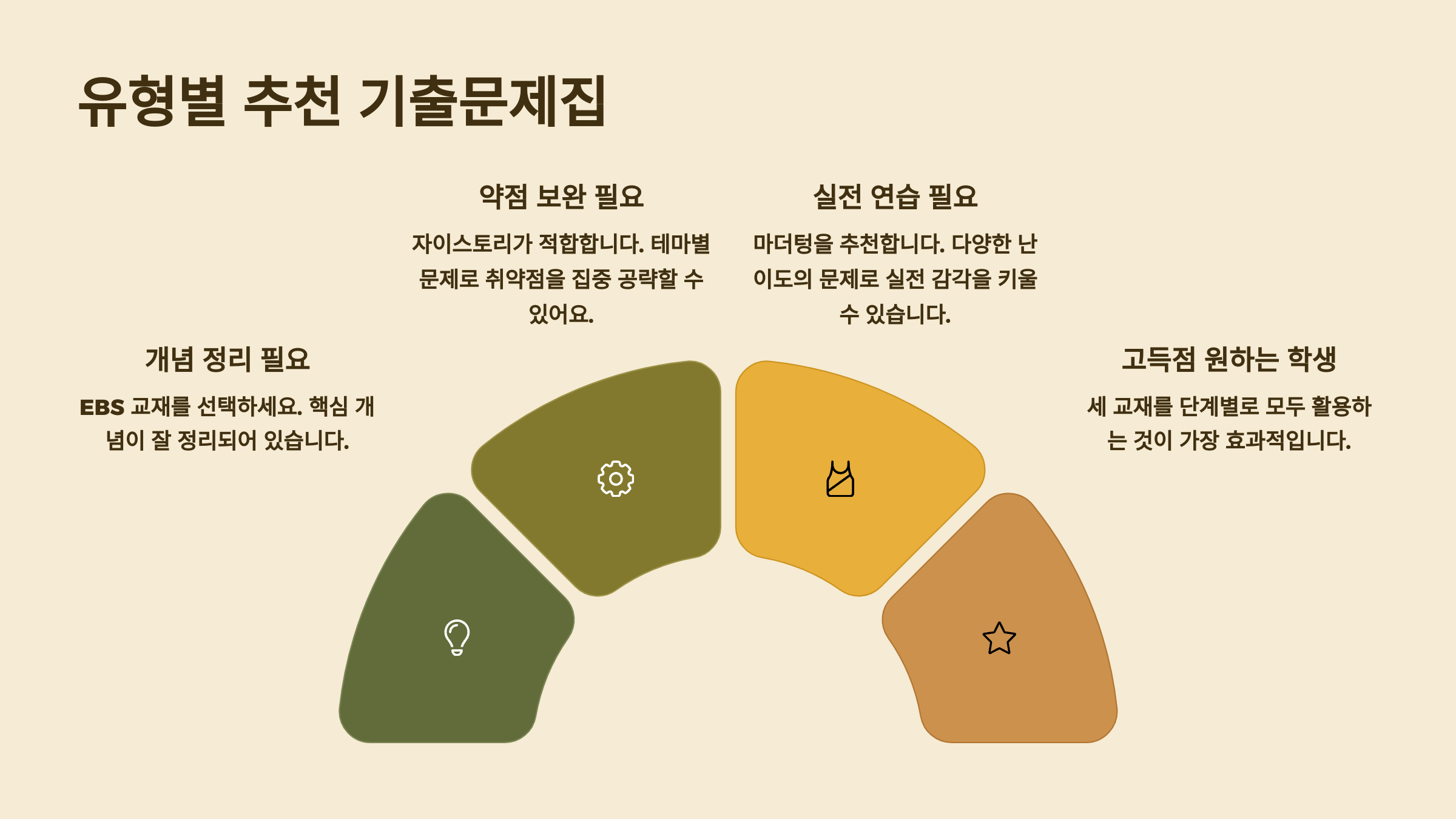 📌 특히 수능은 해마다 약간씩 출제 유형이 바뀌기 때문에, 기출의 흐름과 변화 포인트를 읽을 수 있어야 해요. 어떤 문제집이 그걸 잘 짚어주는지도 선택 기준이 되어야 해요.