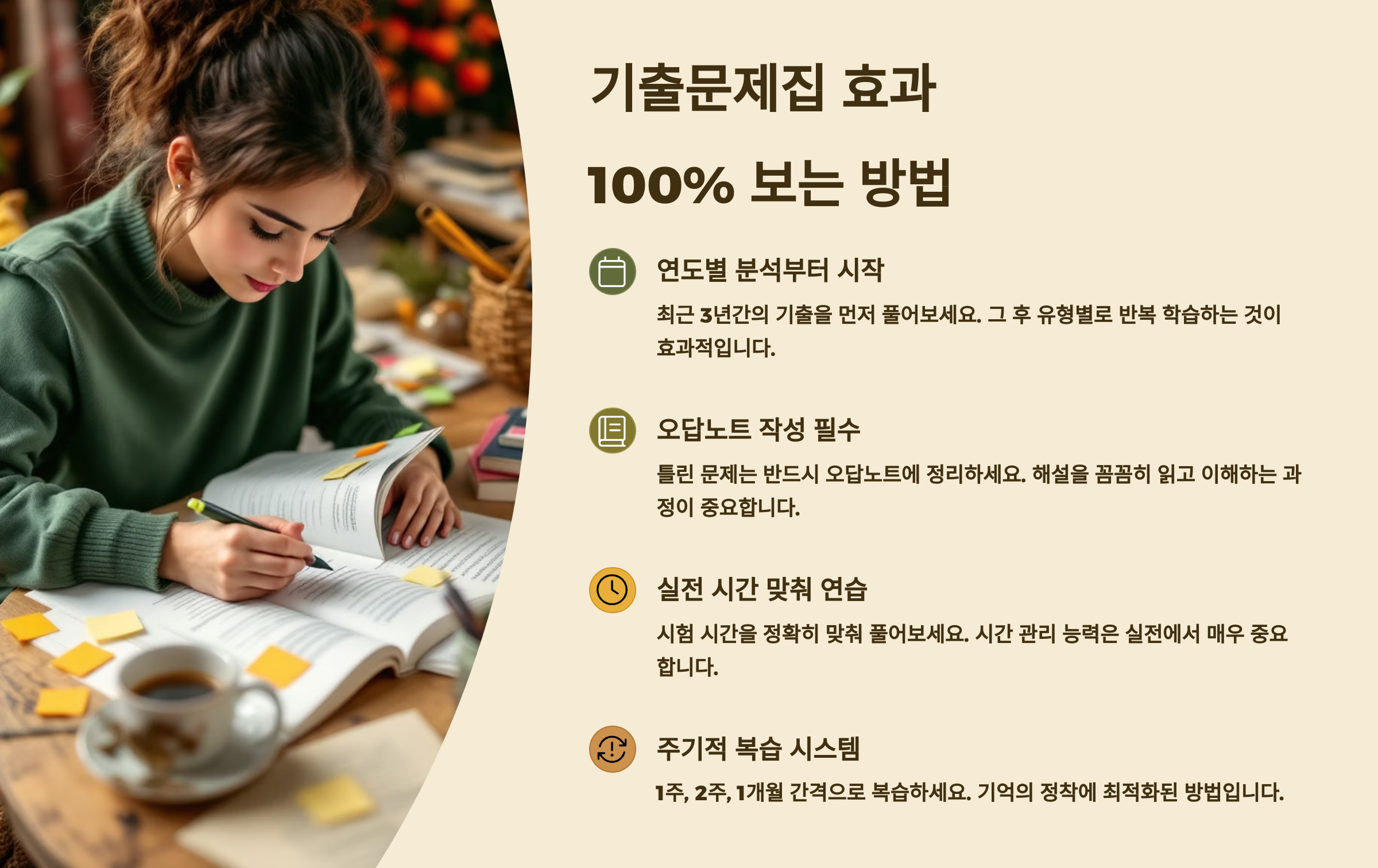📌 다음 섹션에서는 이 기출문제집들을 어떻게 활용해야 100% 효과를 낼 수 있는지 알려드릴게요. 무조건 많이 푸는 게 아니라, 잘 푸는 게 중요하니까요! 😎