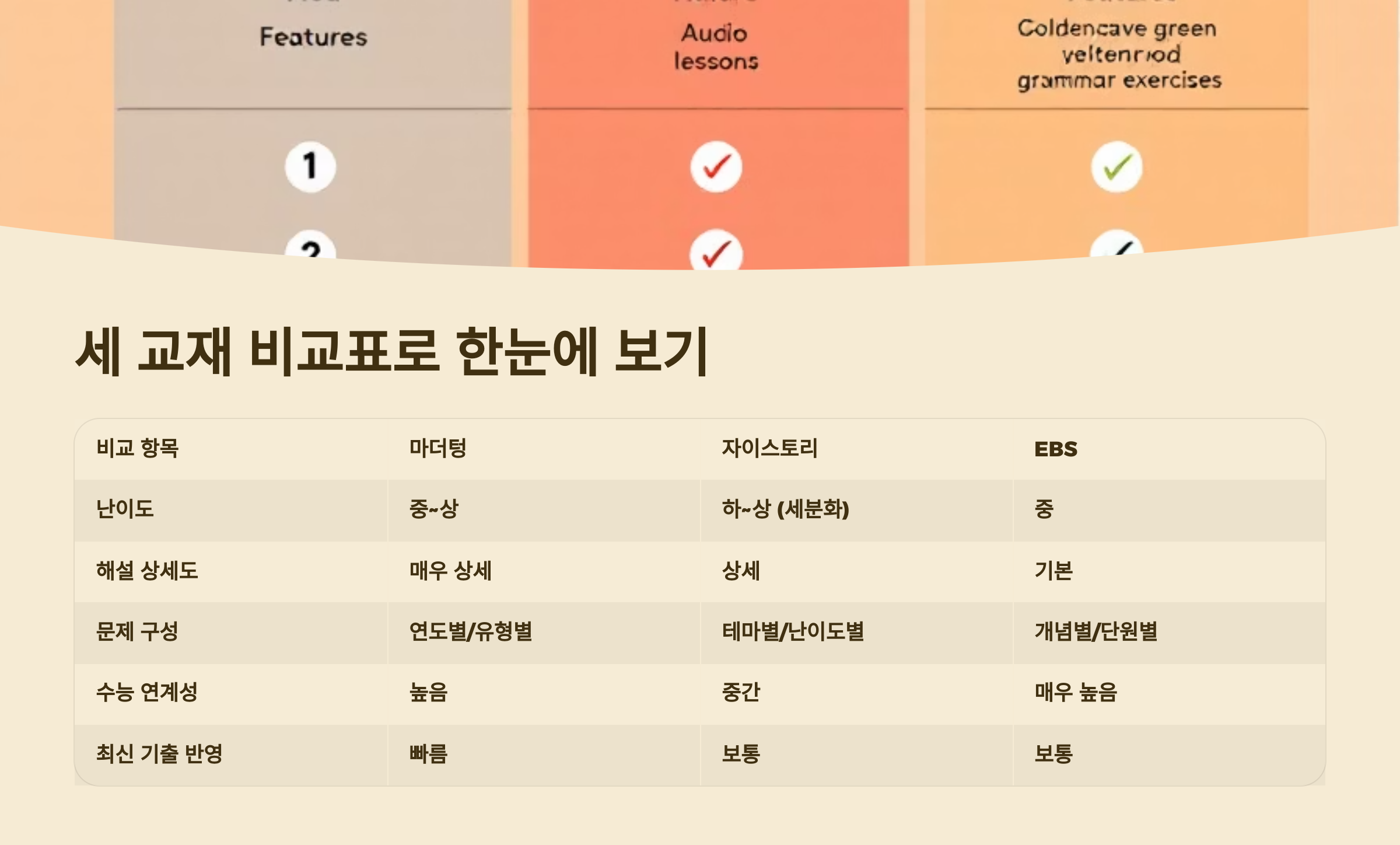 이 글에서는 마더텅, 자이스토리, EBS 세 가지 교재의 특징과 차이점, 실제 수험생의 활용법, 그리고 유형별 추천 전략까지 모두 소개해드릴게요. 지금부터 차근차근 함께 비교해볼까요? 🎓